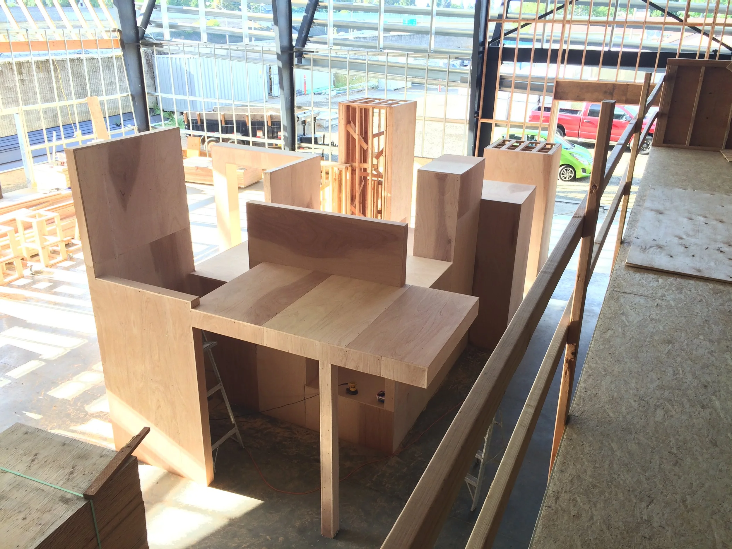 The interior of the building has been going up fast! We have had a lot of help from volunteers with working on the parkour structures. They build process would not being going so quick if it were not for them. One of our main structures is almost completed and we have started to plywood the second main structure. We should have the main lights for the building start working soon.